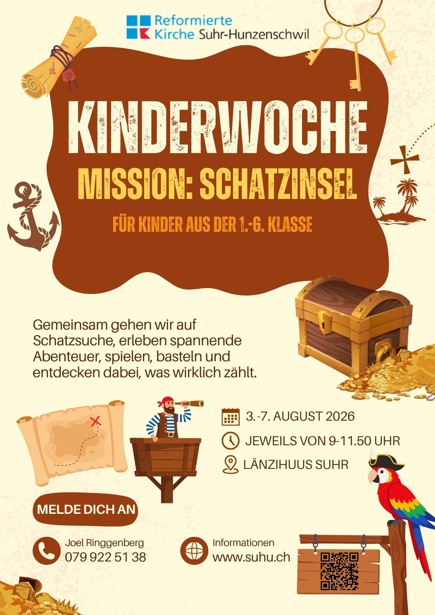 Eine alte Karte, eine mutige Crew und eine geheimnisvolle Insel: Gemeinsam machen wir uns auf eine spannende Reise. Jeden Tag erwartet uns ein neues Abenteuer mit Spielen, Geschichten und kreativen Workshops.